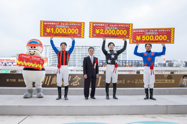 1位:宮川実騎手(高知)   2位:吉原寛人騎手(金沢)  3位:戸崎圭太騎手(JRA/美浦)