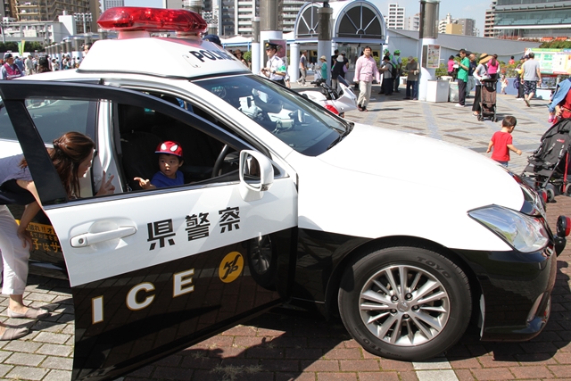 川崎警察署による車両展示と防犯PR活動