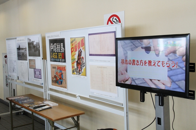 戸塚競馬場の記録を残す展示物と 勝馬投票券の買い方を説明したビデオ放映