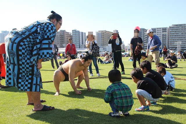 本物のお相撲さんとちびっこがふれあいました。