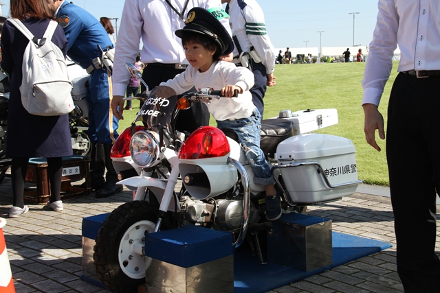 ミニ白バイに跨ったり